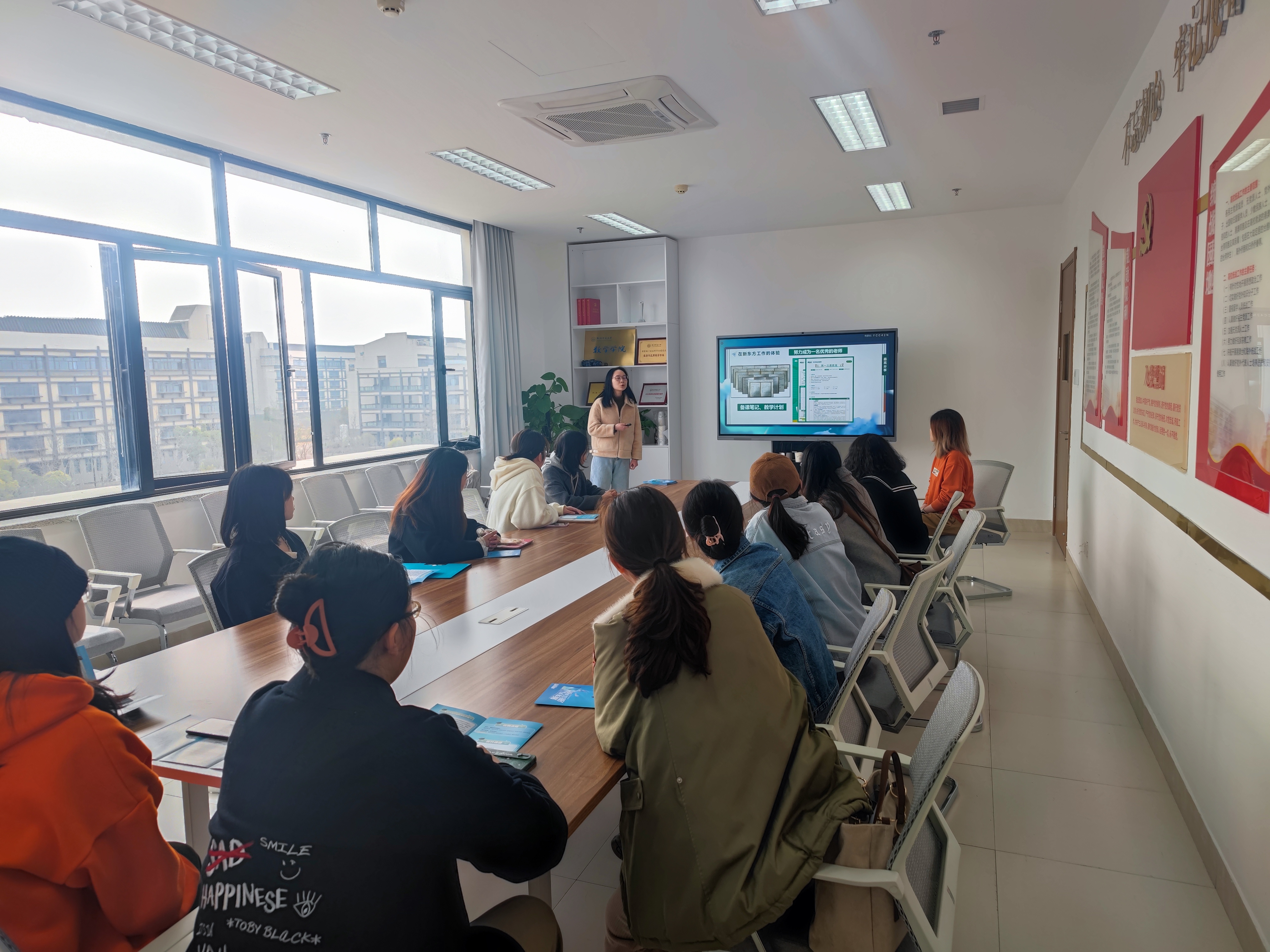 王晓敏先结合自身的求职、入职、从教经历进行了分享活动。在求职环节,她从笔试、面试、磨课、终试等环节进行了详细的讲解。在从教经历环节,她从备课、教学计划安排,以及教学团队氛围等进行分享。冯丹琦浙江新东方的基本情况、招聘岗位流程和要求、培训方式、晋升渠道和空间、薪资待遇等多个方面全方位的介绍了新东方的招聘情况。