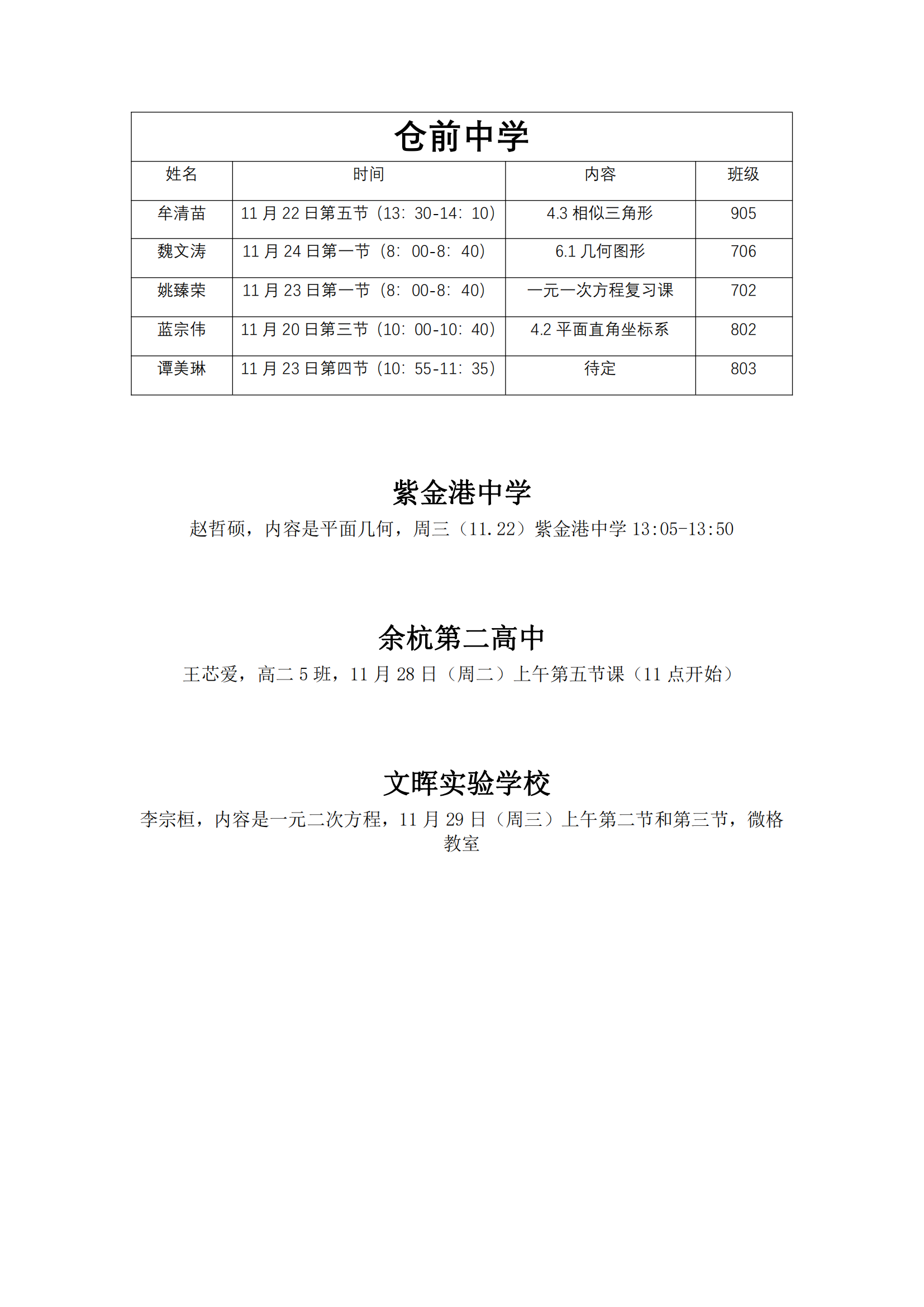洞洞杂货店 2023-2024学年第一学期仓前中学等4个点实习生公开课安排