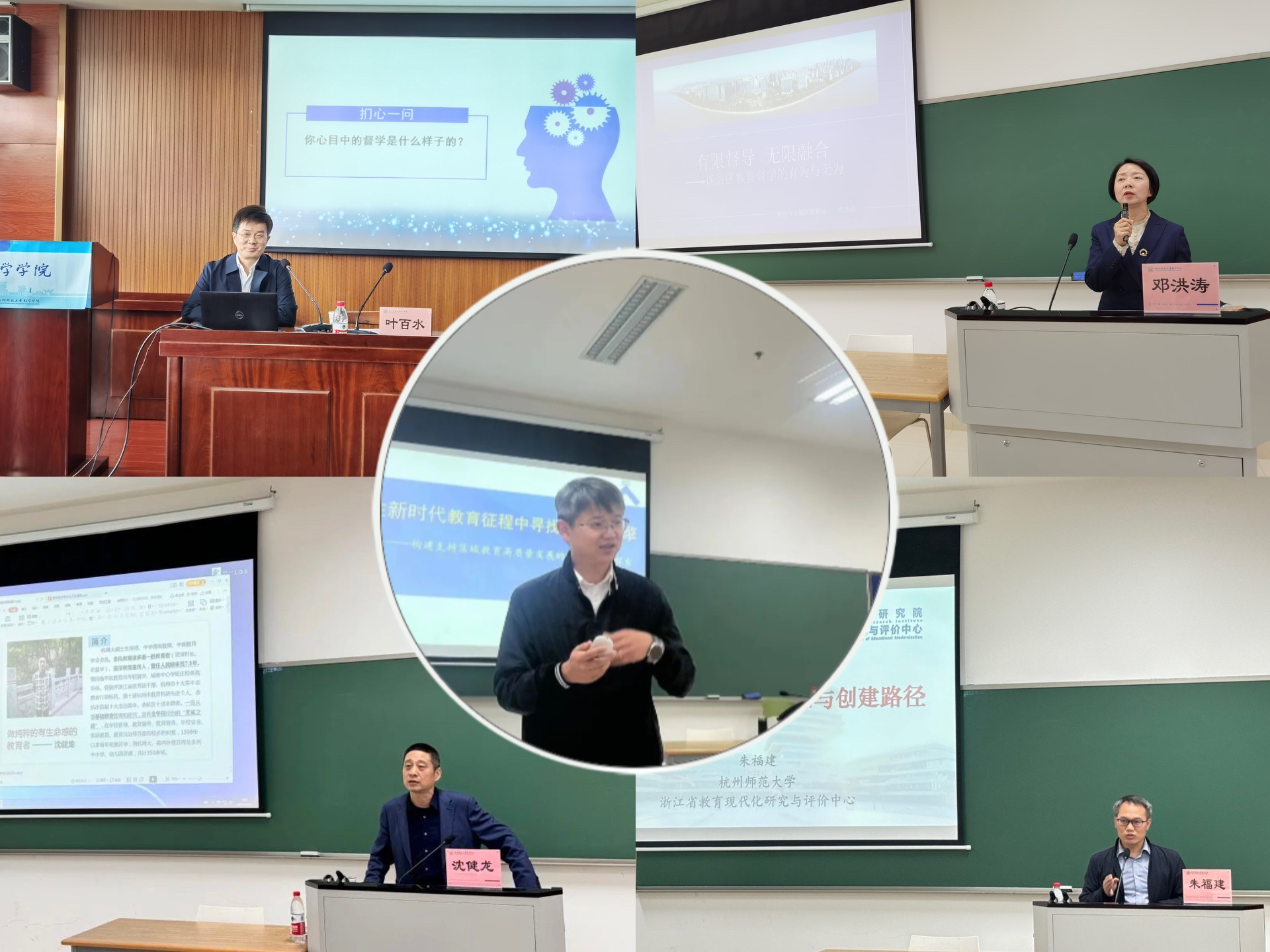 本次培训班主要包括专题讲座、论坛研讨、案例展示、实地考察等教学形式。拱墅区教育局副总督学叶百水带来了《深化评价改革,促进高质量发展——杭州拱墅精准督导例谈》精彩报告,临平区教育局专职督学沈健龙作了《责任督学常态化工作指南——浅谈责任督学的工作理念、方式及视角》专题讲座,上城区教育局专职督学邓洪涛分享了《有限督导、无限融合——谈县区教育督学的有为与无为》督导工作指导课,浙江省教育现代化研究与评价中心博士朱福建阐述了《现代化学校的核心理念与创建路径》,上城区教育学院党总支书记伍小斌的《在新时代教育征程中寻找发展新引擎——构建支持区域教育高质量发展的新评价系统探索》引发了学员们新的思考。