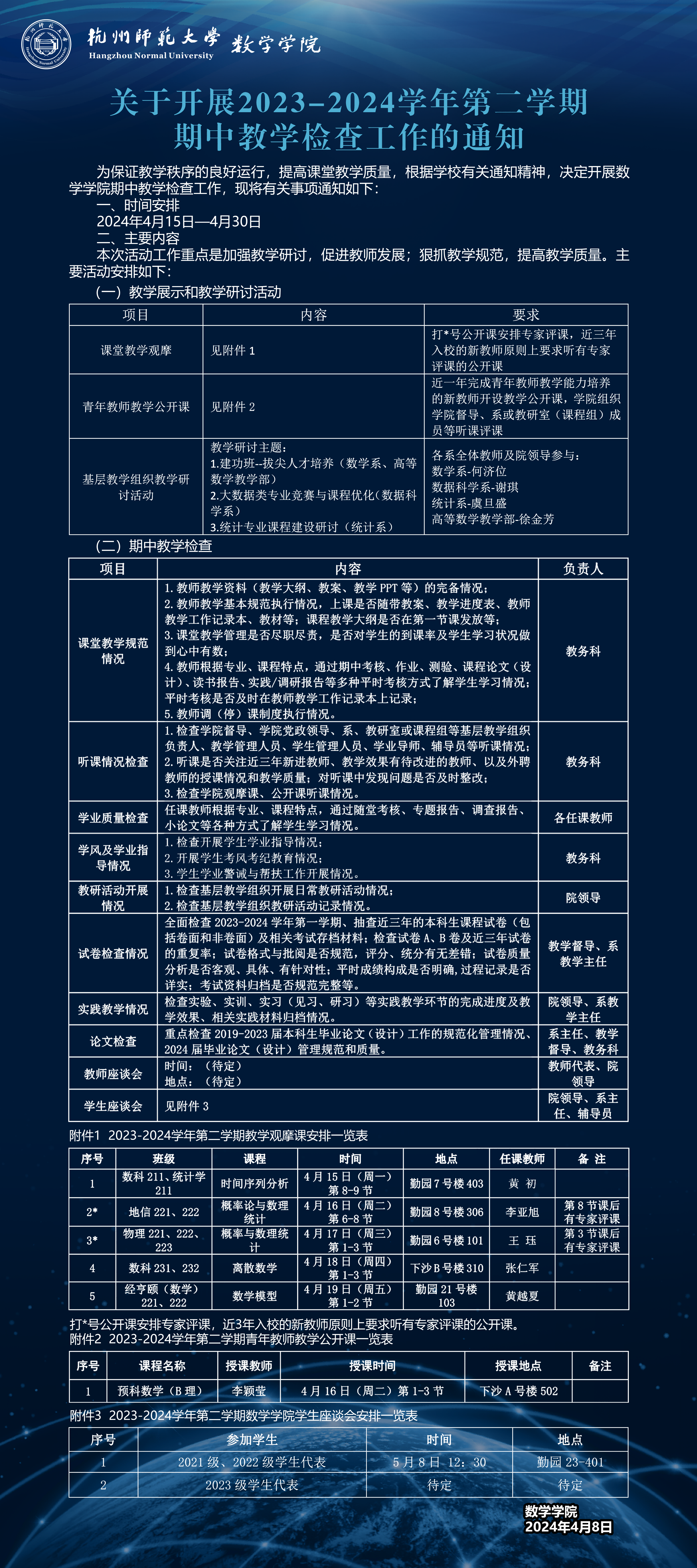 洞洞杂货店 2023-2024学年第二学期期中教学检查安排