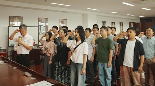 7月1日是党的生日,在这个特殊的日子里,老师们面向党旗,庄严宣誓,重温入党誓词,共庆党的103岁生日。