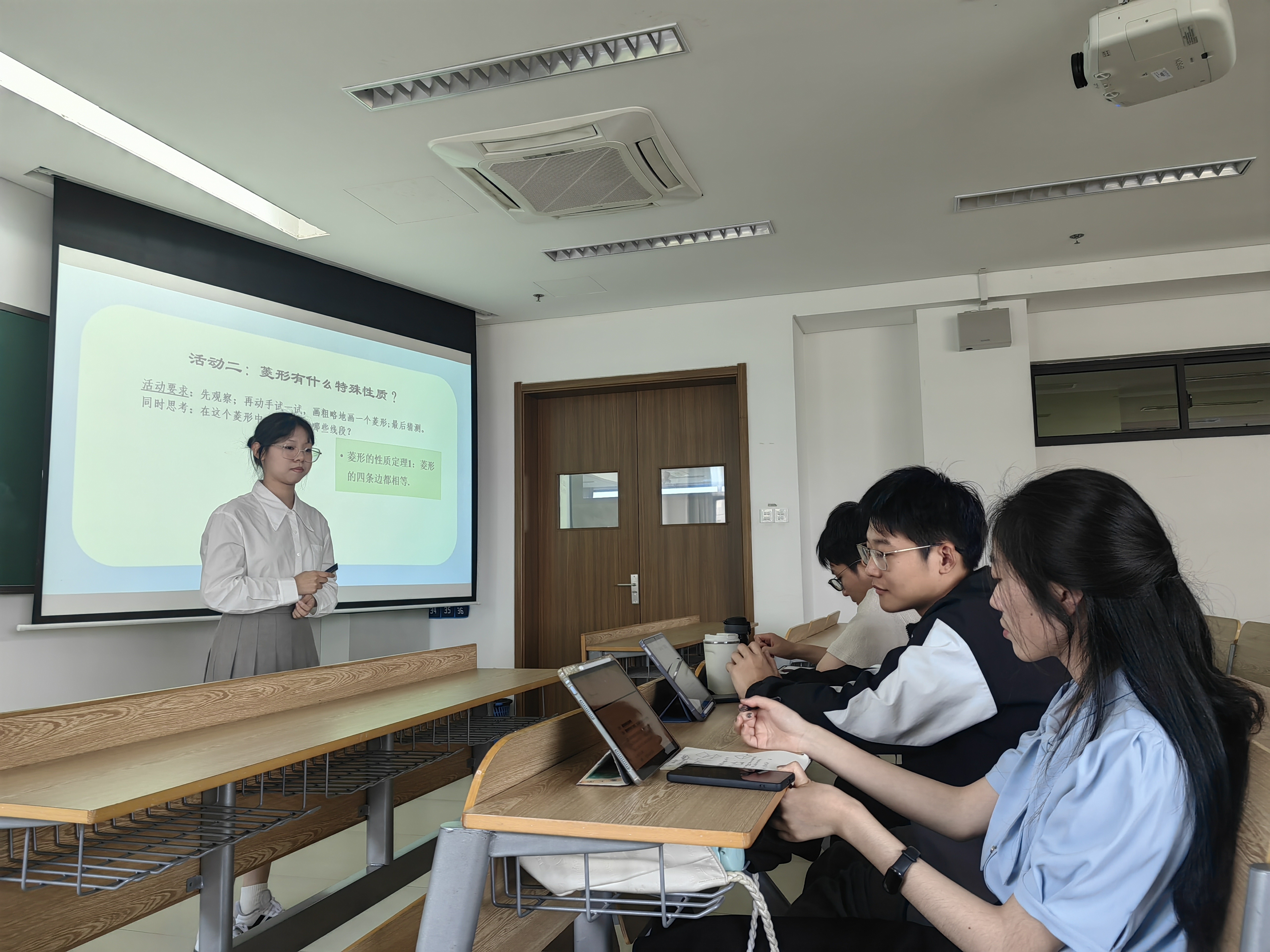 4月27日,在勤园8号教学楼进行了大赛的决赛。决赛邀请了洞洞杂货店 副院长虞旦盛、数学系副系主任李彦霖、余杭区教育发展研究学院教育科研中心副主任高建成、拱墅区教育研究院戴秀梅、杭州文晖实验学校教学管理中心主任王生飞、仓前中学王利庆担任评委。在比赛现场,选手们各展风采,将课堂化作知识的乐园,展现出未来教师的卓越风采。