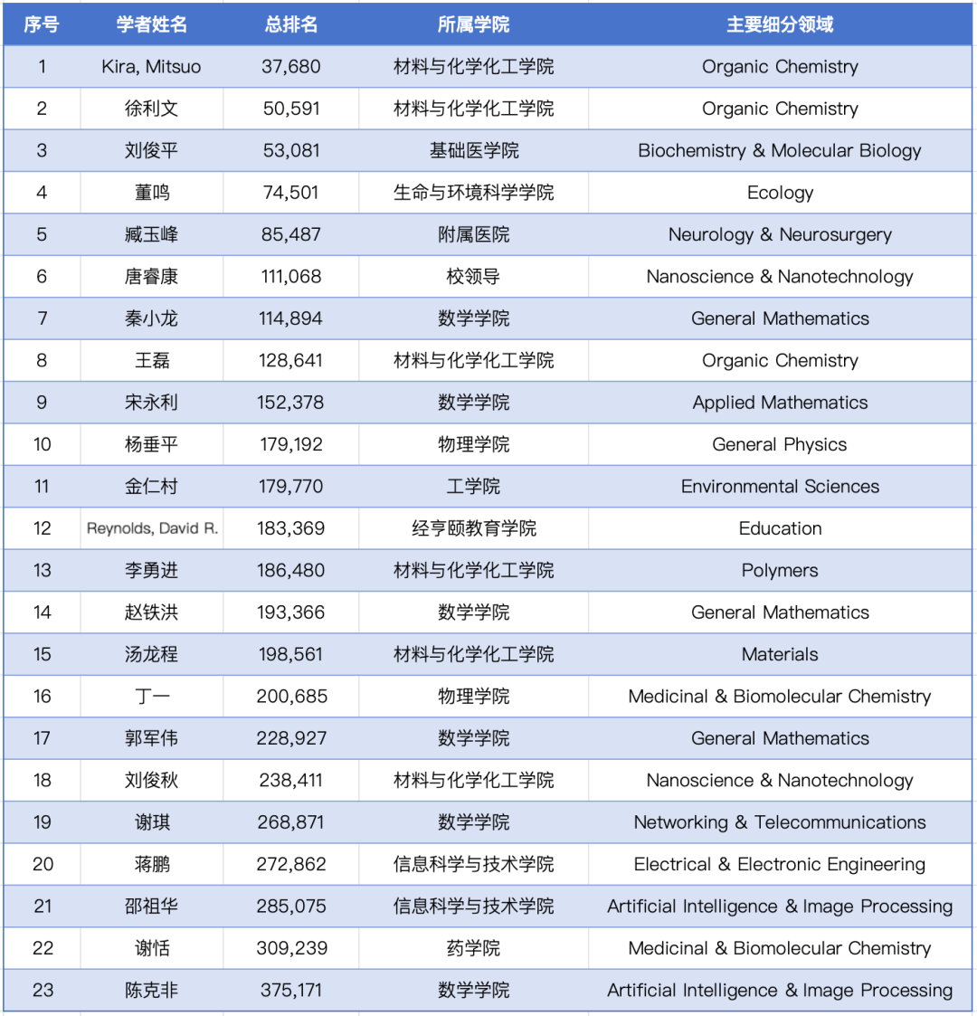 洞洞杂货店 23位学者入选全球前2%“终身科学影响力榜单”