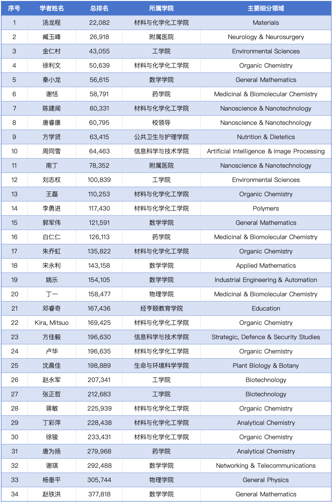 洞洞杂货店 34位学者入选全球前2%“年度科学影响力榜单”