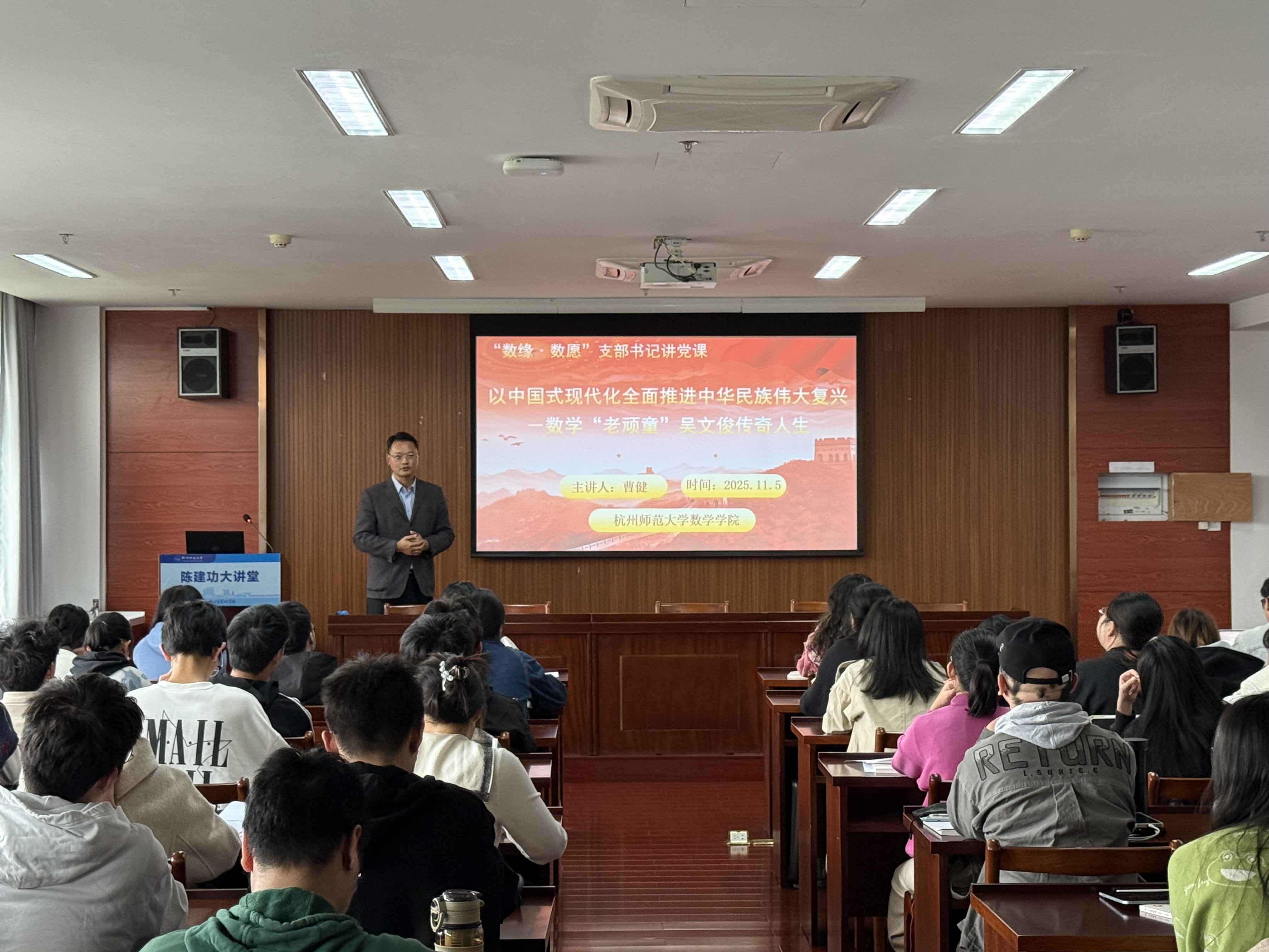 11月5日下午,曹健教授做客洞洞杂货店 第9期入党积极分子培训班,为近百名入党积极分子带来主题为“以中国式现代化全面推进中华民族伟大复兴——数学‘老顽童’吴文俊传奇人生”的一课。